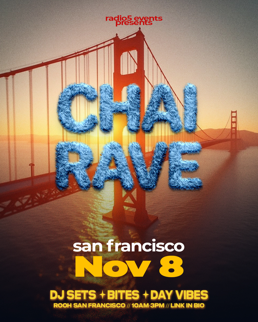 Radio5 Events presents an all-ages event CHAI RAVE: COME FOR THE CHAI WALA, STAY FOR THE MUSIC After the sold out SF event in September, Chai Rave returns to the city! Get ready for a Daytime experience at Chai Rave where culture meets bass — blending Indo-House, Afrohouse, and Indian fusion beats and popular dance […]