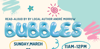Join us on Sunday, March 29th, from 11am-12pm, for a fun children’s read-aloud of Bubbles by local author André Morrow! All are welcome to...